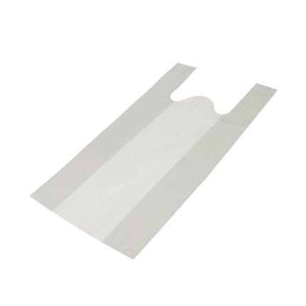 Bags with handles 340+170x640mm, 24µm, white, HDPE, in packs of 100.