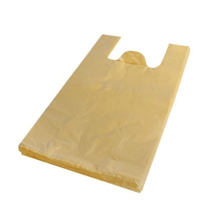 Bags with handles 300+180x550mm, 25µm, yellow, HDPE, in packs of 100.