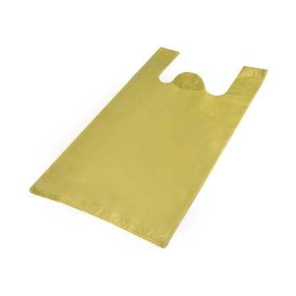 Bags with handles 340+170x640mm, 24µm, yellow, HDPE, in packs of 100.