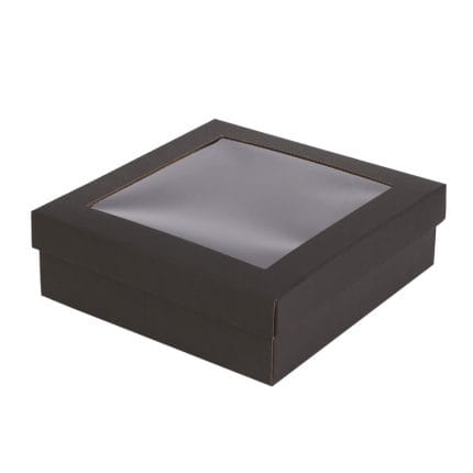 Micro-corrugated cardboard box with lid and transparent window, 180x180x80mm, 14E, in packs of 10