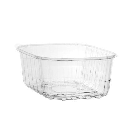 Disposable plastic containers with ventilation holes. Made from PP. Suitable for packaging berries, vegetables and fruit.