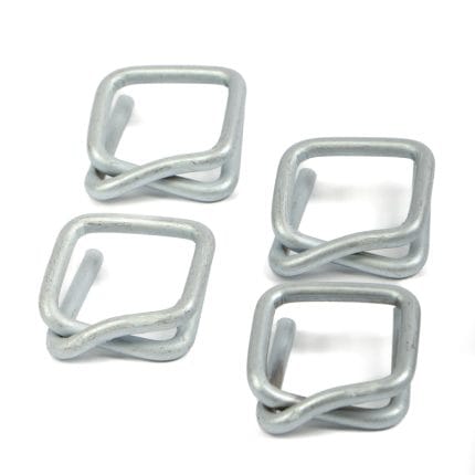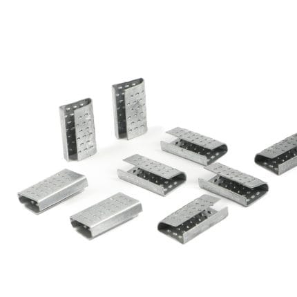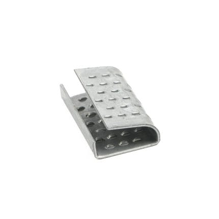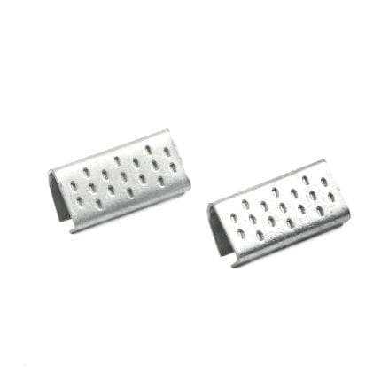 Metal twisted clips for strap tape, 19 mm, in packs of 1000 pcs.