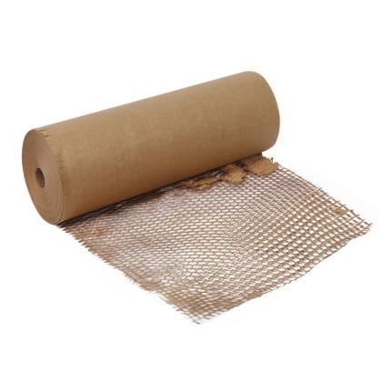 Honeycomb wrapping paper, for protecting products during transport, for decorative packaging or other packaging and for filling empty spaces, brown. A biodegradable and environmentally friendly alternative to conventional bubble wrap. Roll width 30cm, length 50cm