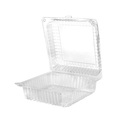 7,97 €/pack PET confectionery containers 125x125x38.5/38.5 mm, with hinged lid, transparent, 50 pcs.