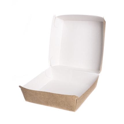 Paper burger boxes 145x145x80mm, white/kraft, 100 pcs.