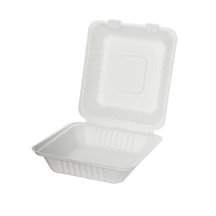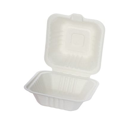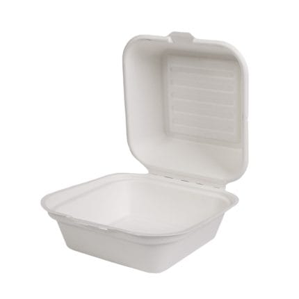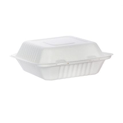 BIOBOX sugar cane burger boxes 152 x 152 x 80 mm, with lid, white, 50 pcs.