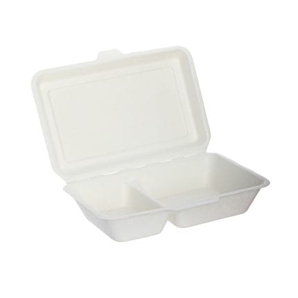 BIOBOX sugar cane boxes with two compartments, 260x155x65mm, with lid, white, 50 pcs.