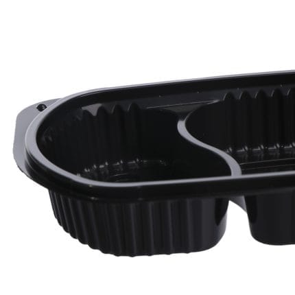 PP containers for hot food, 600 ml, 235 x 145 x 35 mm, with two compartments, black, 100 pcs.