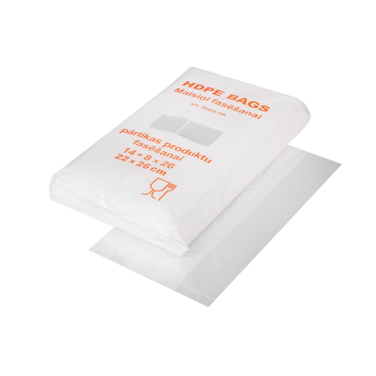 Bags without handles 14+8x26cm, 8µm, transparent, HDPE, in packs of 650 pcs.