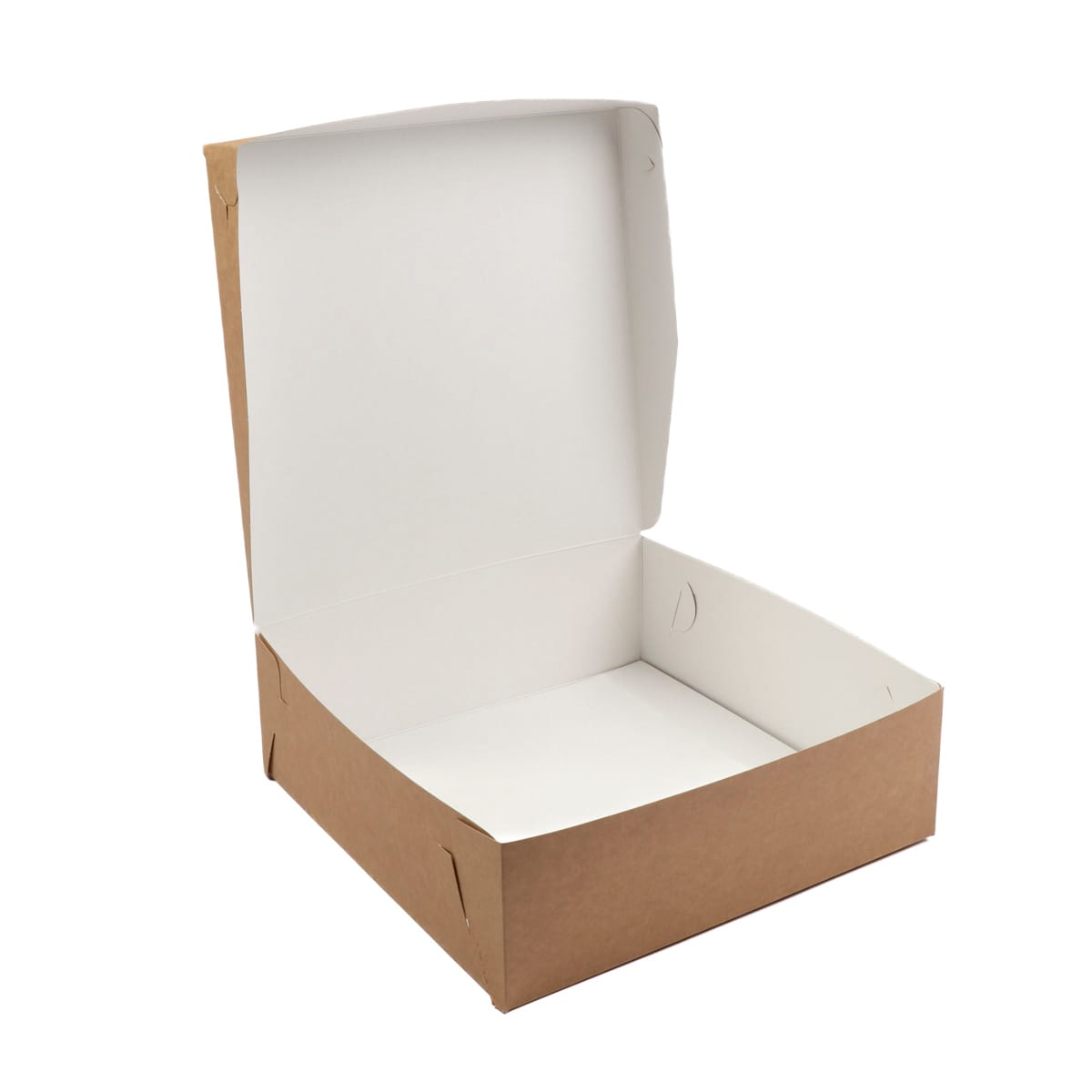 Cardboard boxes 24x24x10cm with lid, white/brown, in packs of 50.