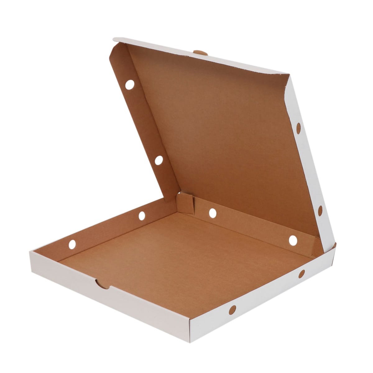 Cardboard boxes 30x30x3cm with hinged lid for pizza, white, in packs of 50, 14EW (FEFCO 0426)