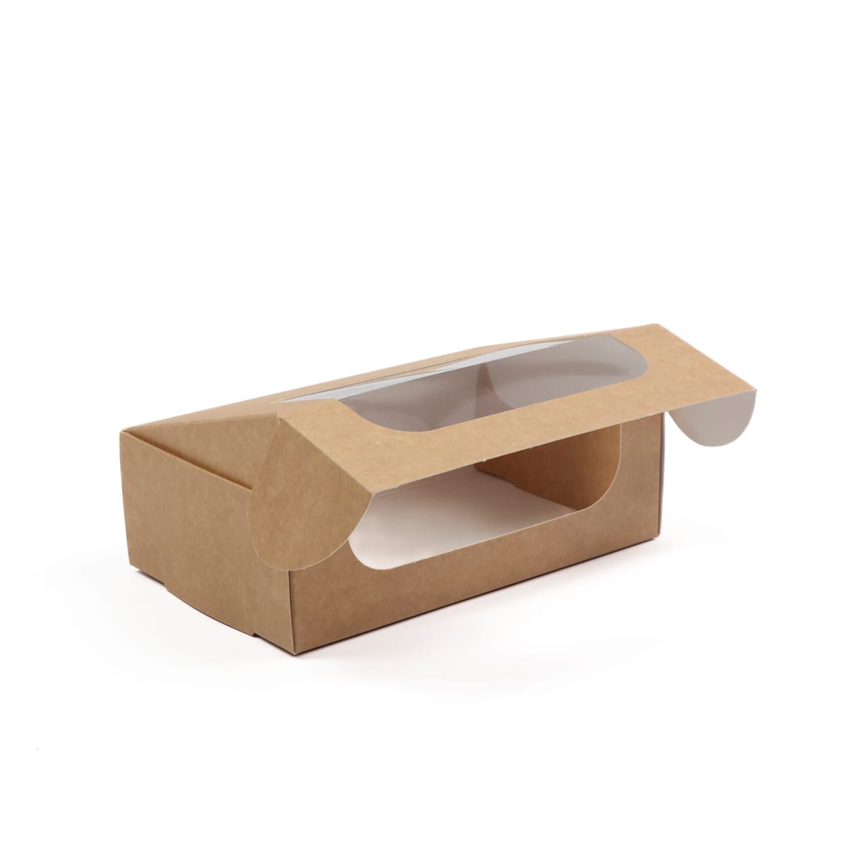 Cardboard boxes for confectionery with window and lid, 190x120x60mm, brown