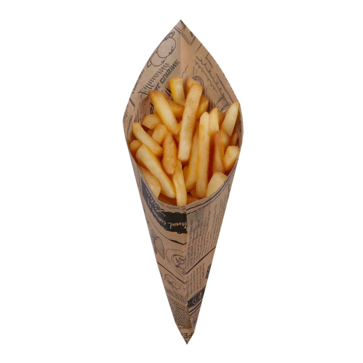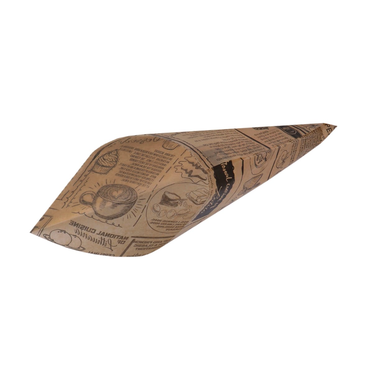 Conical paper bags 220x220mm, PAP, GS 40gsm, brown with newspaper print