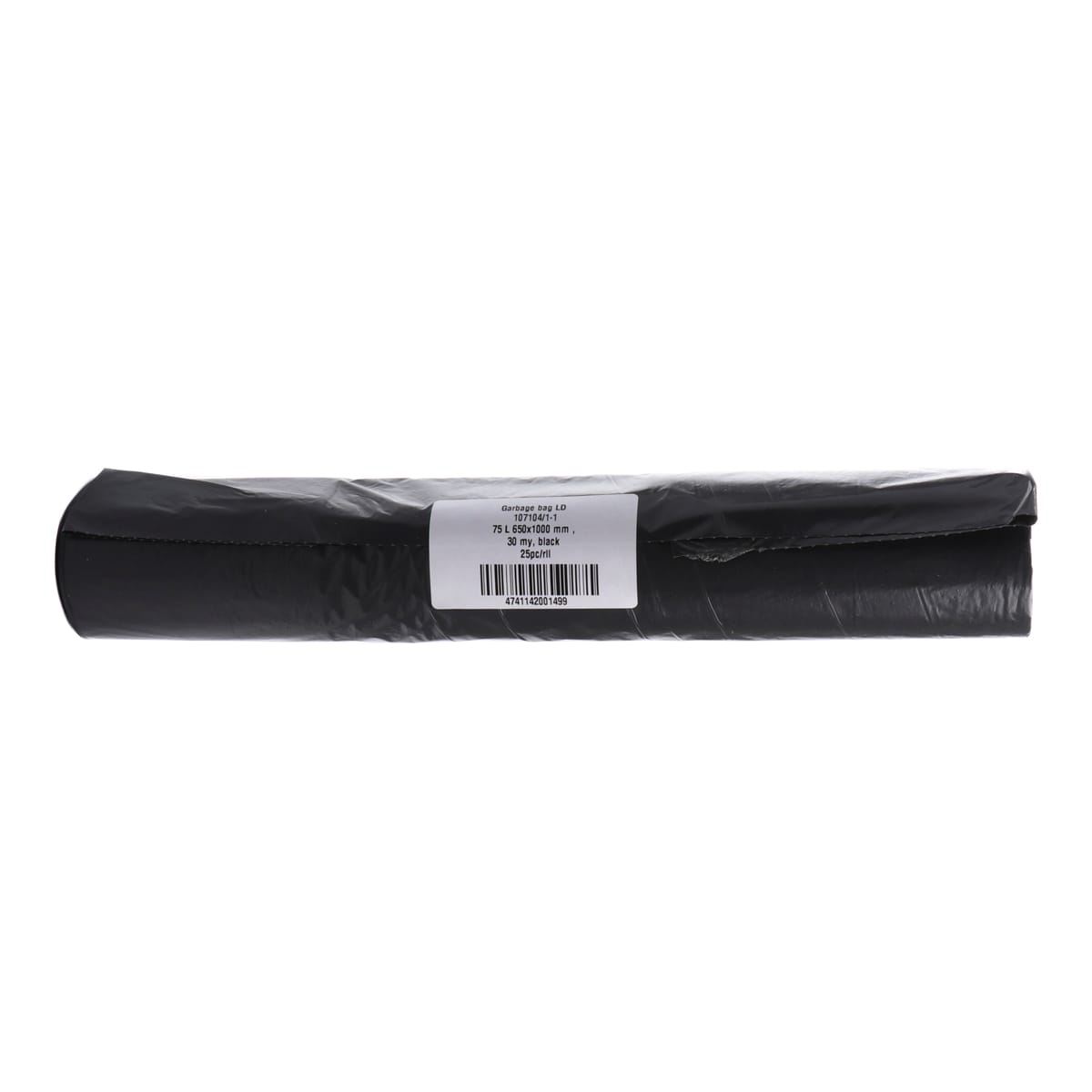 Garbage bags 65x100cm, 75L black, 30µm, LDPE, in a roll of 25 pcs.