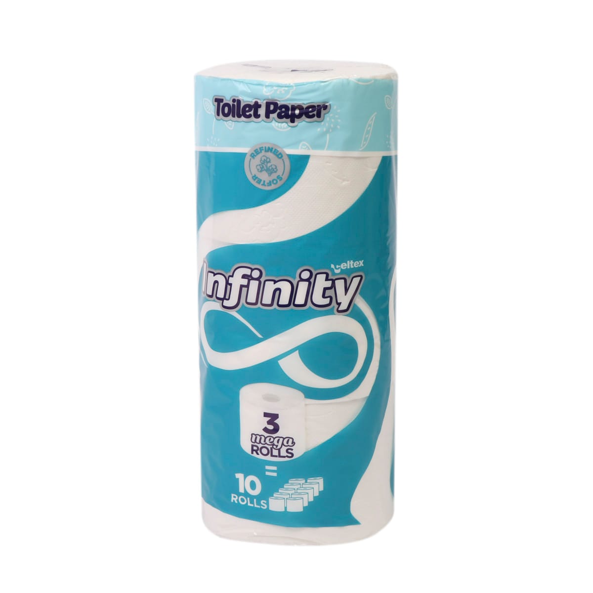 Infinity Prof toilet paper, C10670N, 2ply, h9.5cm, 65m, 650 sheets (9.5x10cm), 3 rolls per pack.