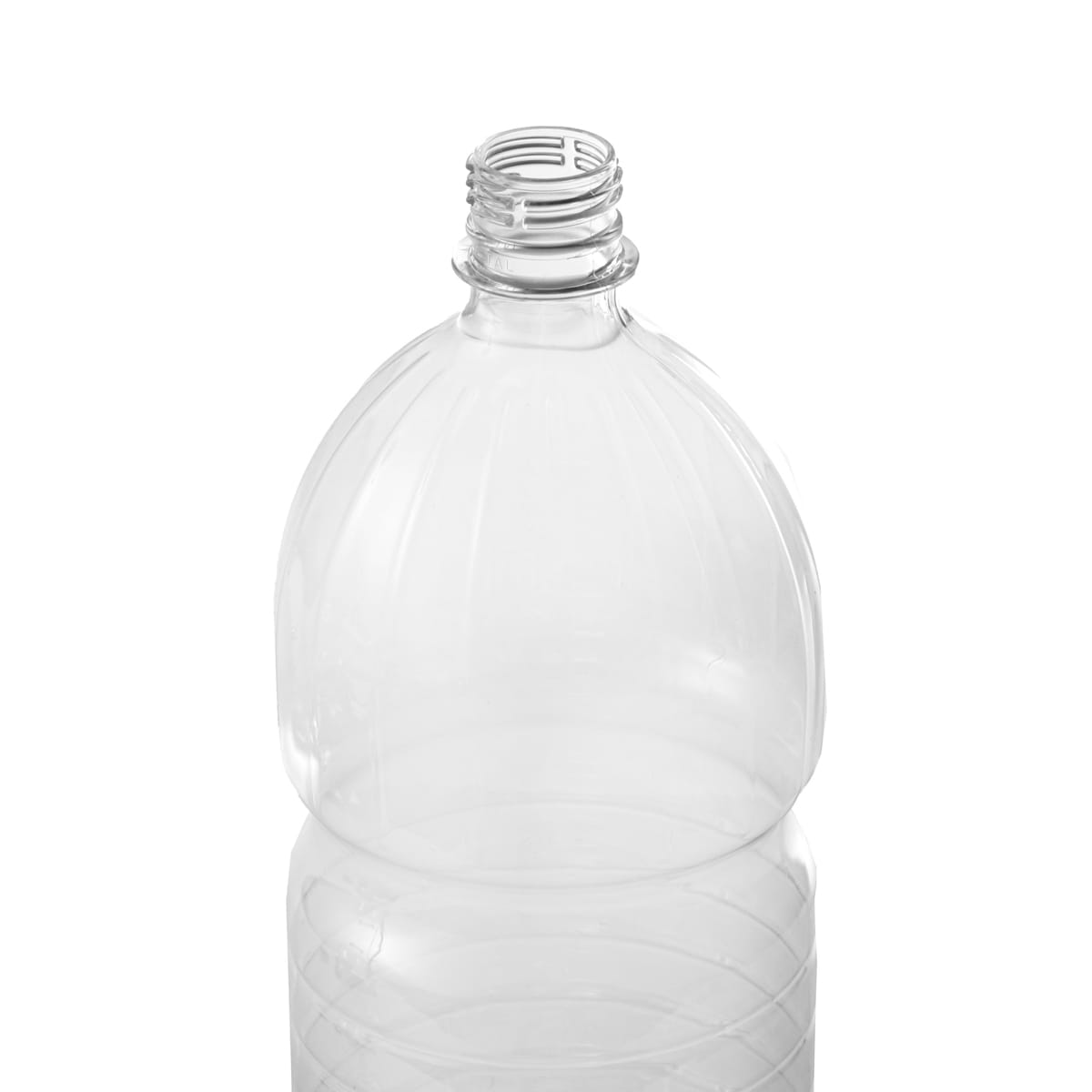 PET bottles (30% rPET) 2 l, neck Ø28 mm, transparent, round, in packs of 112.