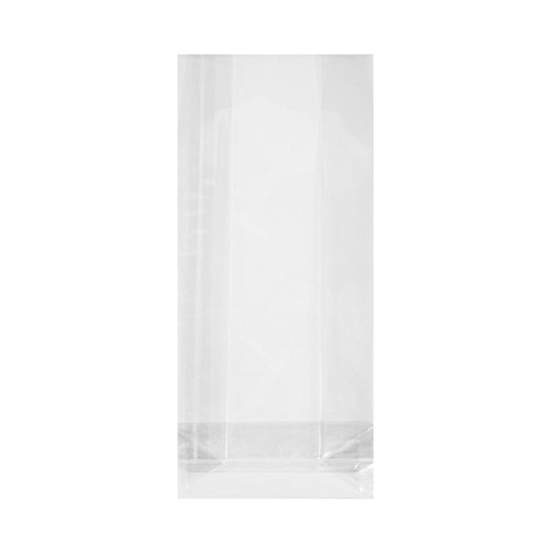 Polypropylene bags with rectangular bottom 8+3.5x18cm, 40µm transparent, in packs of 100 pcs.
