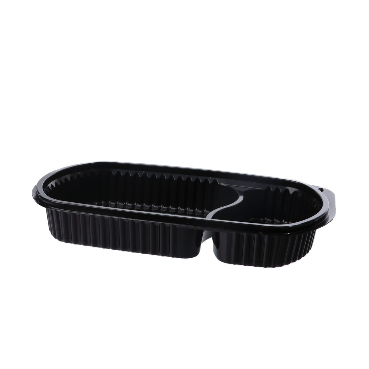 PP containers for hot food, 600 ml, 235 x 145 x 35 mm, with two compartments, black, 100 pcs.