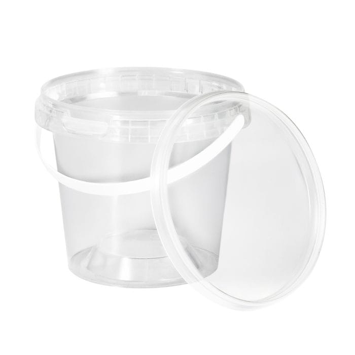 Plastic buckets 0.67 l, transparent, with handle, with transparent lid, PP