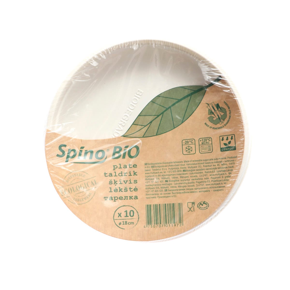 SPINO BIO sugar cane plates, Ø18 cm, white, 10 pcs.
