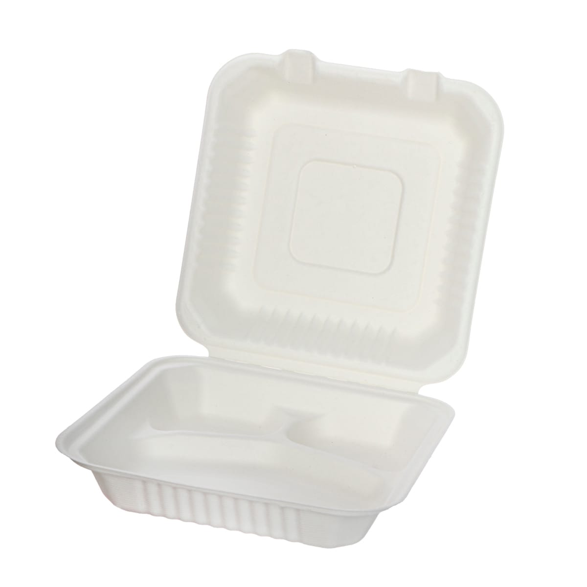 Sugar cane boxes with three compartments BIOBOX, 230x230x70mm, with lid, white, 50 pcs.