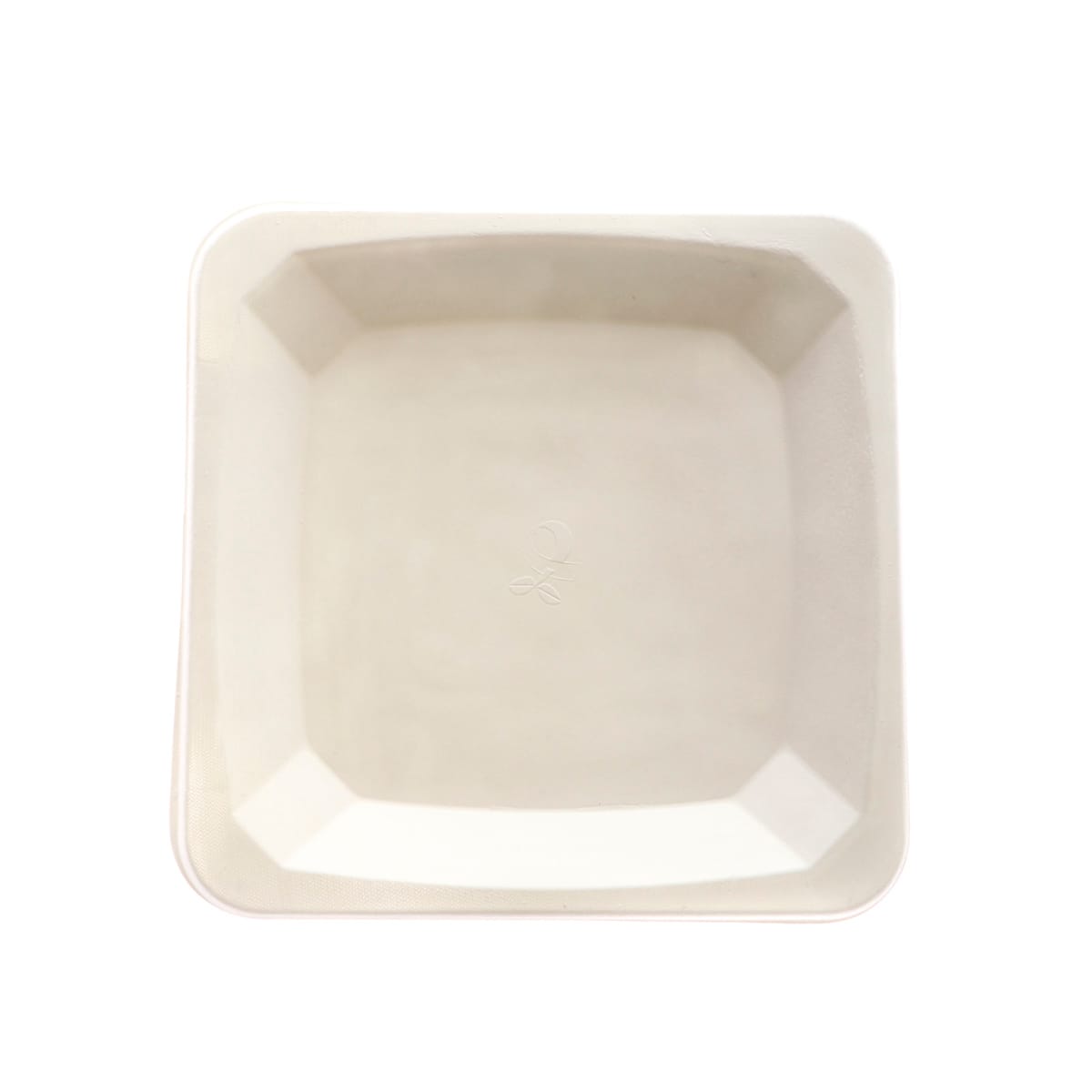 Biodegradable disposable tableware made from sugar cane. Made from renewable resources. Suitable for cold and hot foods. Can be used in the microwave.