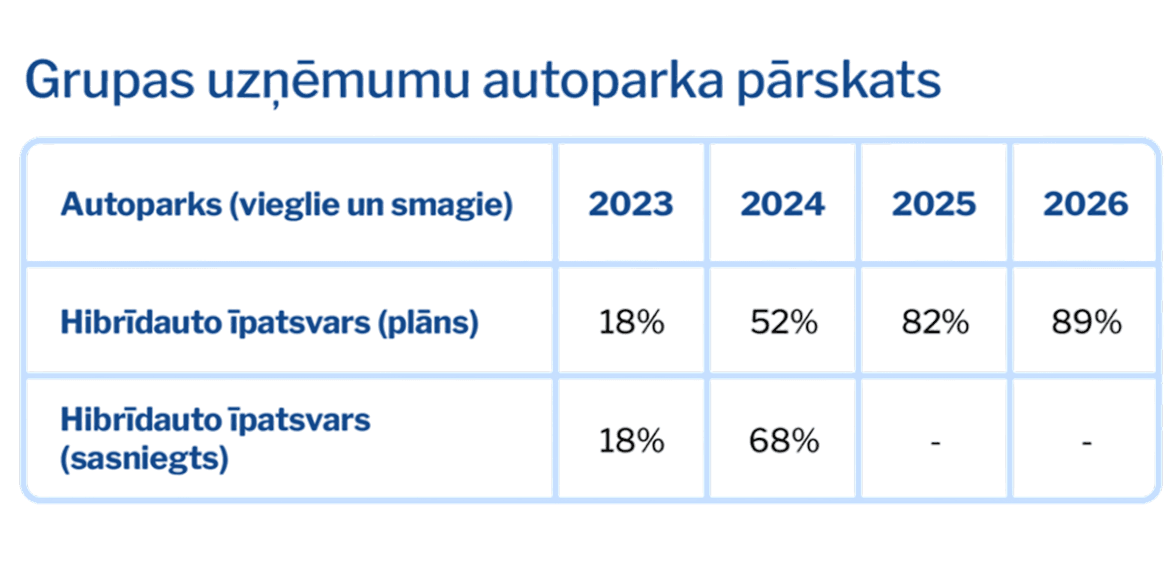 Mēs pakāpeniski nomainām visu uzņēmuma autoparku uz hibrīdautomobiļiem. Šī apzinātā pāreja uz videi draudzīgāku transportu atspoguļo mūsu stingro apņemšanos samazināt emisijas un veicināt ilgtspējīgu mobilitāti.