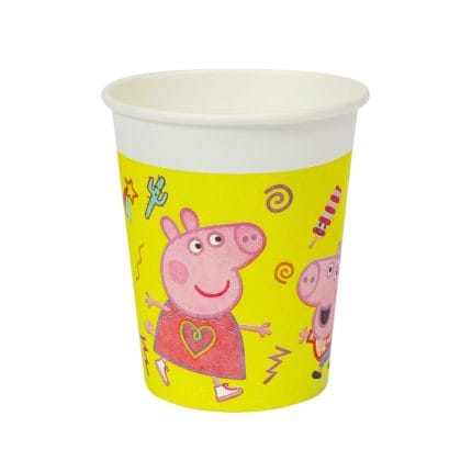 Puodeliai PAP/PE, 200ml, Ø80mm, baltos sp., PEPPA PIG, vienasluoksniai, 8 vnt.