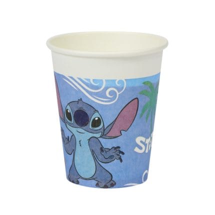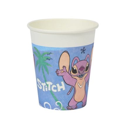 Puodeliai PAP/PE, 200 ml, Ø80 mm, baltos sp., STITCH & ANGEL, vienasluoksniai, 8 vnt.