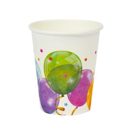 Puodeliai PAP/PE, 200ml, Ø80mm, baltos sp., SPARKLING BALOONS, vienasluoksniai, 8 vnt.