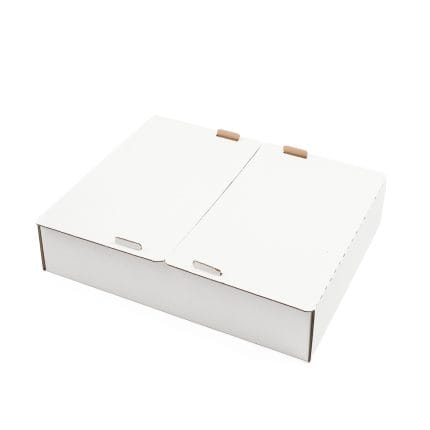 2,65 €/vnt. Gofruoto kartono dėžutė 288x202x62 mm, baltos sp., 14BW, pakuotėje 25 vnt.