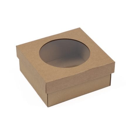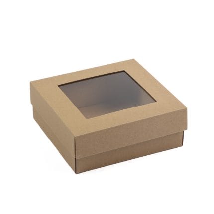 Mikro gofruoto kartono dėžutė su dangteliu ir skaidriu langeliu, 180x180x80 mm, 14E, pakuotėje 10 vnt.
