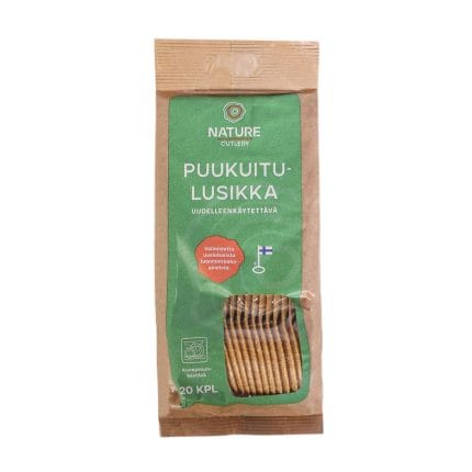 1,64 €/pak. Medžio pl. šaukštai 17cm, rudos sp., daugkartinio naudojimo, supakuoti individualiai
