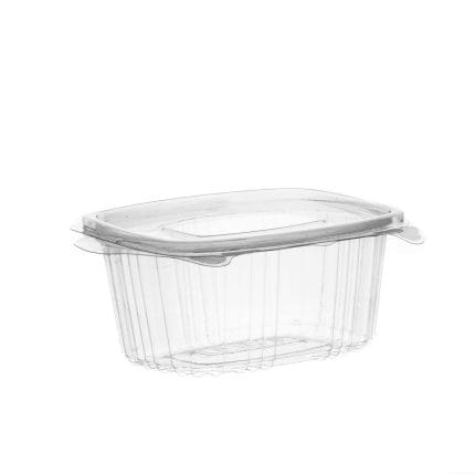 5,03 €/pak. Indeliai PET 375 ml, 132x95x60 mm, su atlenkiamu dangteliu, skaidrūs, 100 vnt.
