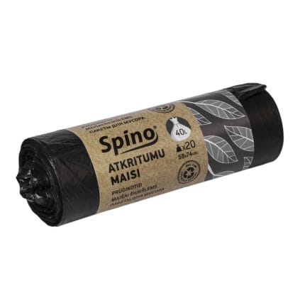 Šiukšlių maišai 58x74cm, 40l, juodos sp, 10µm, HDPE, rulone 20 vnt.