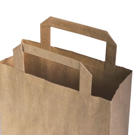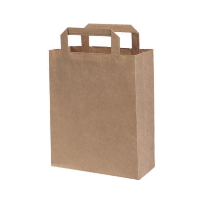 Popieriniai maišeliai su plokščiomis rankenėlėmis, 220x100x240 mm, 70 gsm, rudos sp.