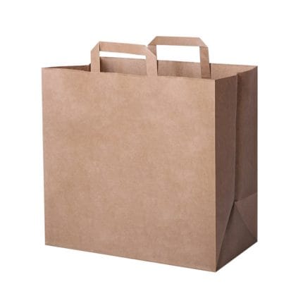 Popieriniai maišeliai su plokščiomis rankenėlėmis, 260x170x290mm, 70gsm, rudos sp.