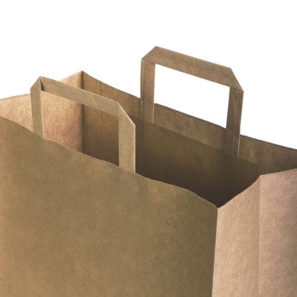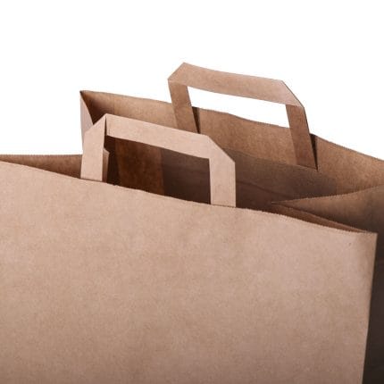 Popieriniai maišeliai su plokščiomis rankenėlėmis, 350x180x250 mm, 70 gsm, rudos sp.