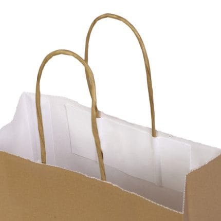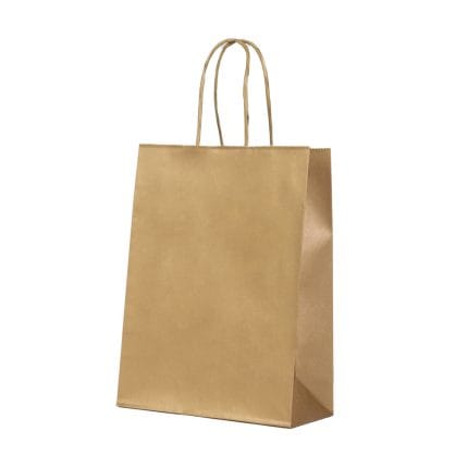 Popierinis maišelis su plokščiomis rankenomis. Krepšelis pagamintas iš nebalinto popieriaus, kurio išorė spalvota, tačiau vidus išlieka rudas. Rudos spalvos rankenos. Puikiai tinka dovanoms pakuoti ir pirkiniams.