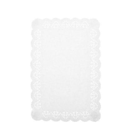 Popierinės 250 x 380 mm servetėlės tortams, baltos sp., pakuotėje 100 vnt.
