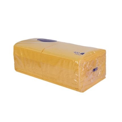 20,09 €/pak. Popierinės servetėlės 24×24 cm, 1/4, 1 sluoksnis, geltonos sp., pakuotėje 75 vnt.
