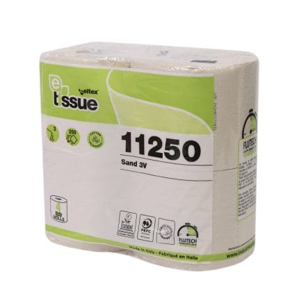 Tualetinis popierius Sand 4R, C11250, 3 sluoksniai, h9,8 cm, 27,5 m, 250 lapų (9,8×11 cm), pakuotėje 4 rul.
