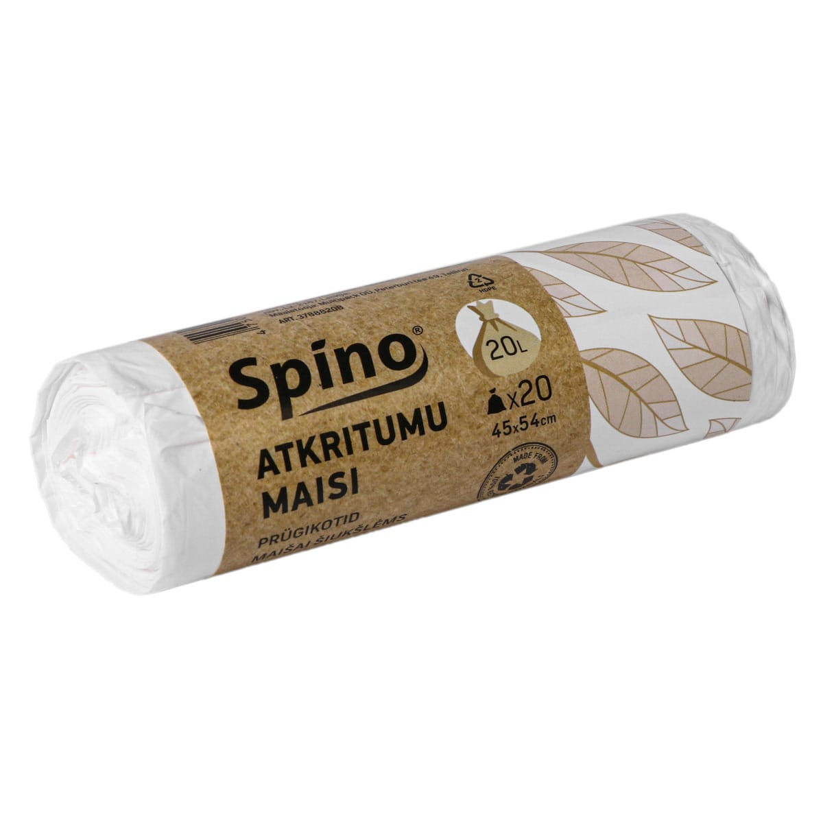 Šiukšlių maišai 45x54cm, 20l, baltos sp., 9µm, HDPE, rulone 20 vnt.