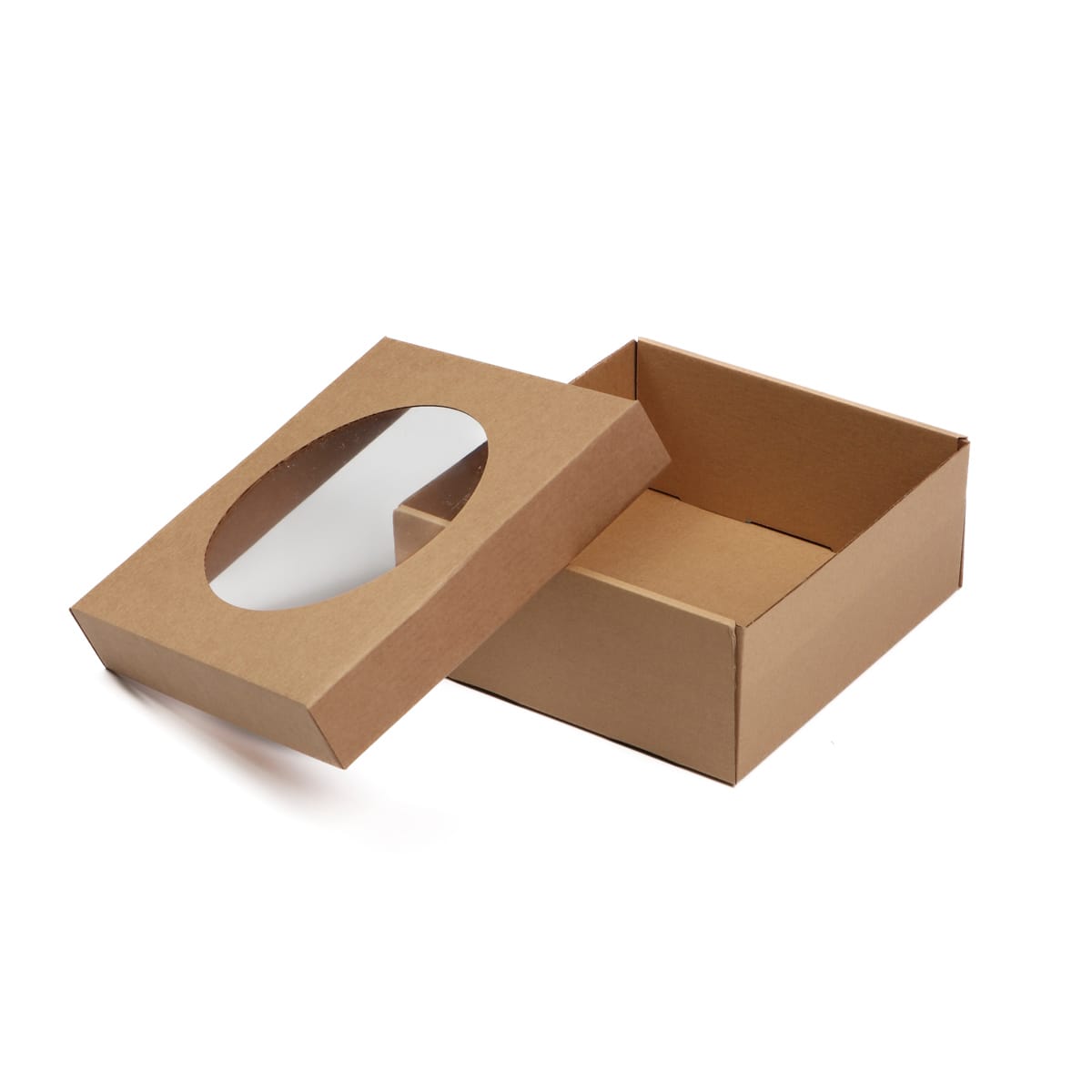Mikro gofruoto kartono dėžutė su dangteliu ir skaidriu langeliu, 180x180x80 mm, 14E, pakuotėje 10 vnt.