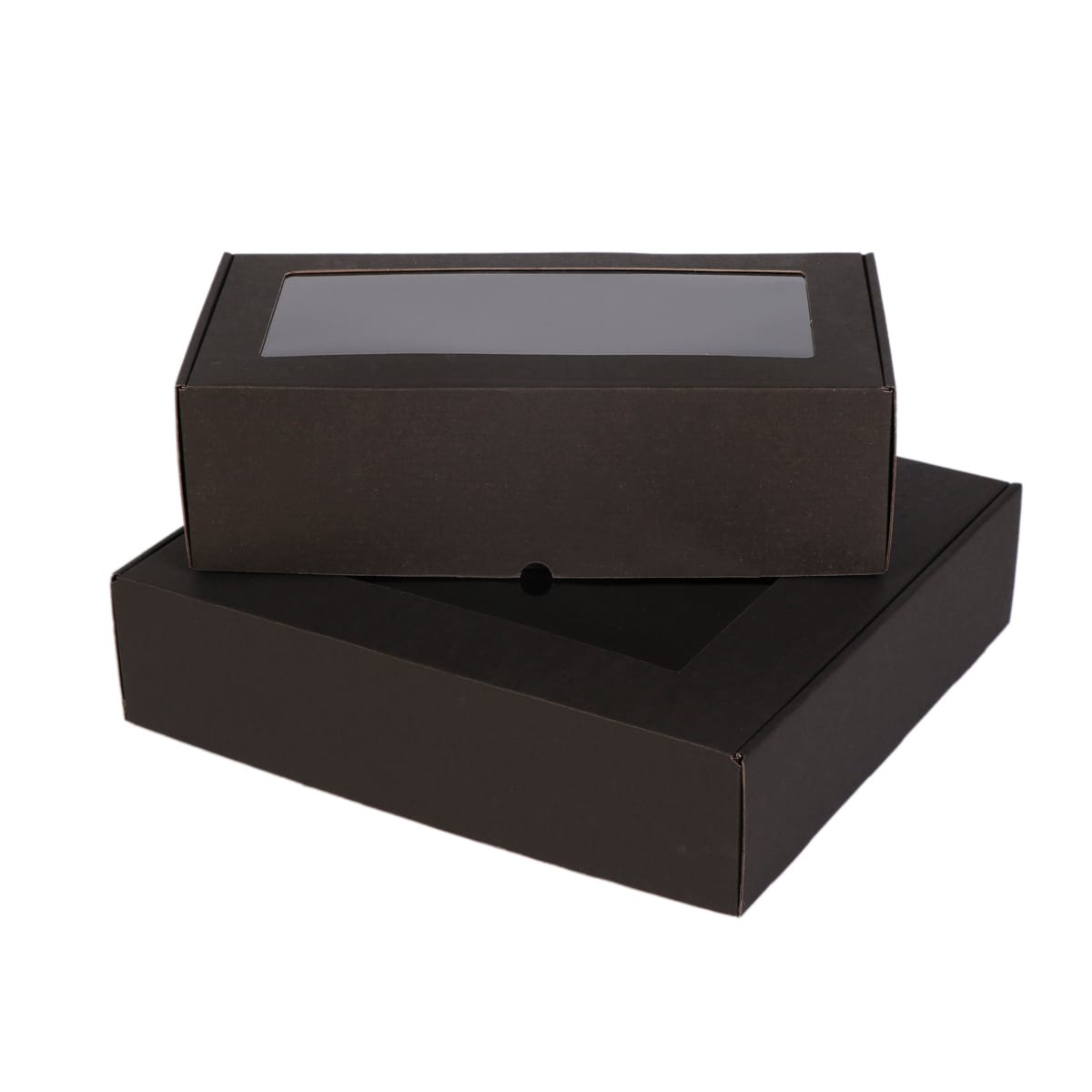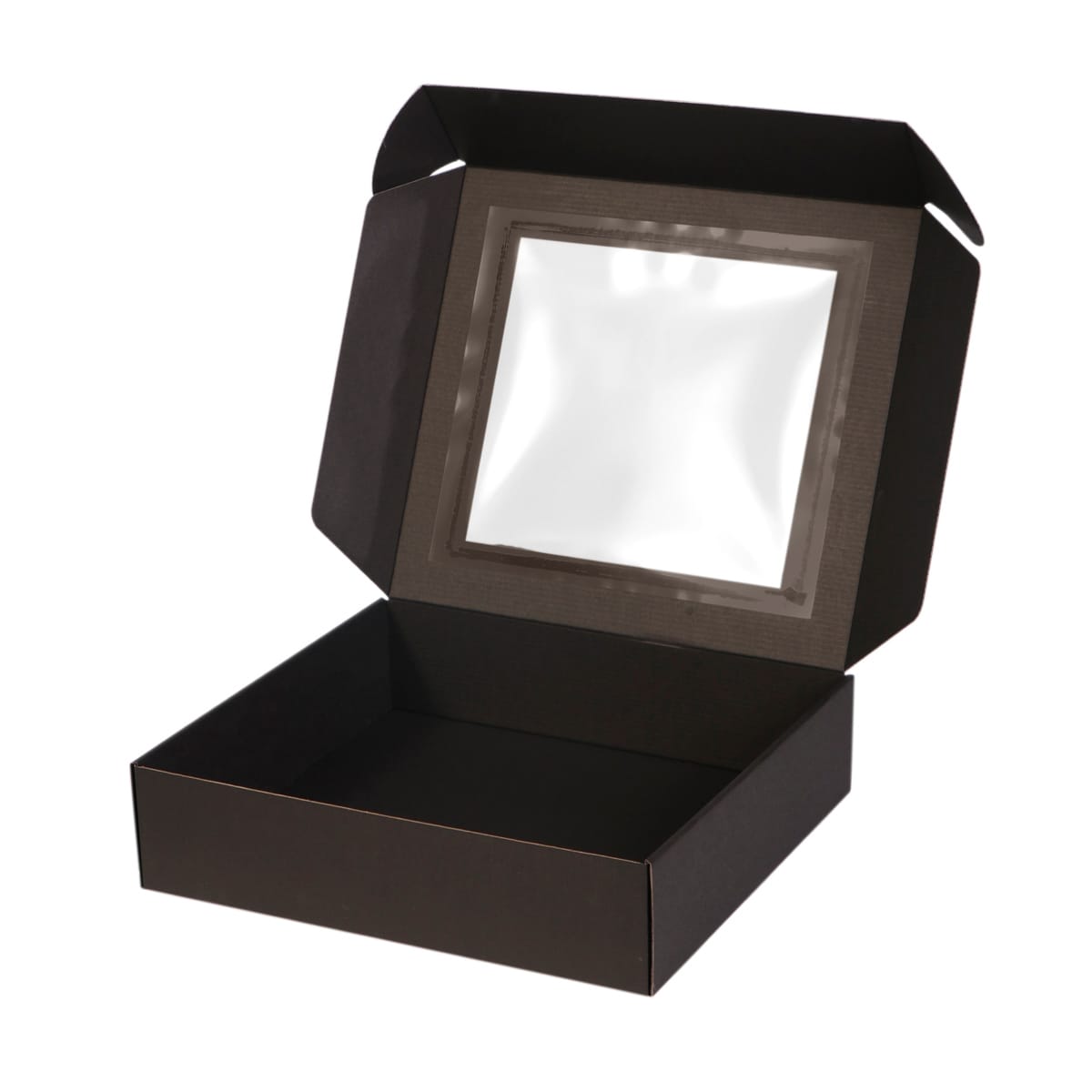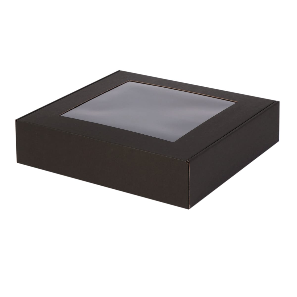 Dovanų dėžutė 330x300x80 mm su atlenkiamu dangteliu ir langeliu, juoda