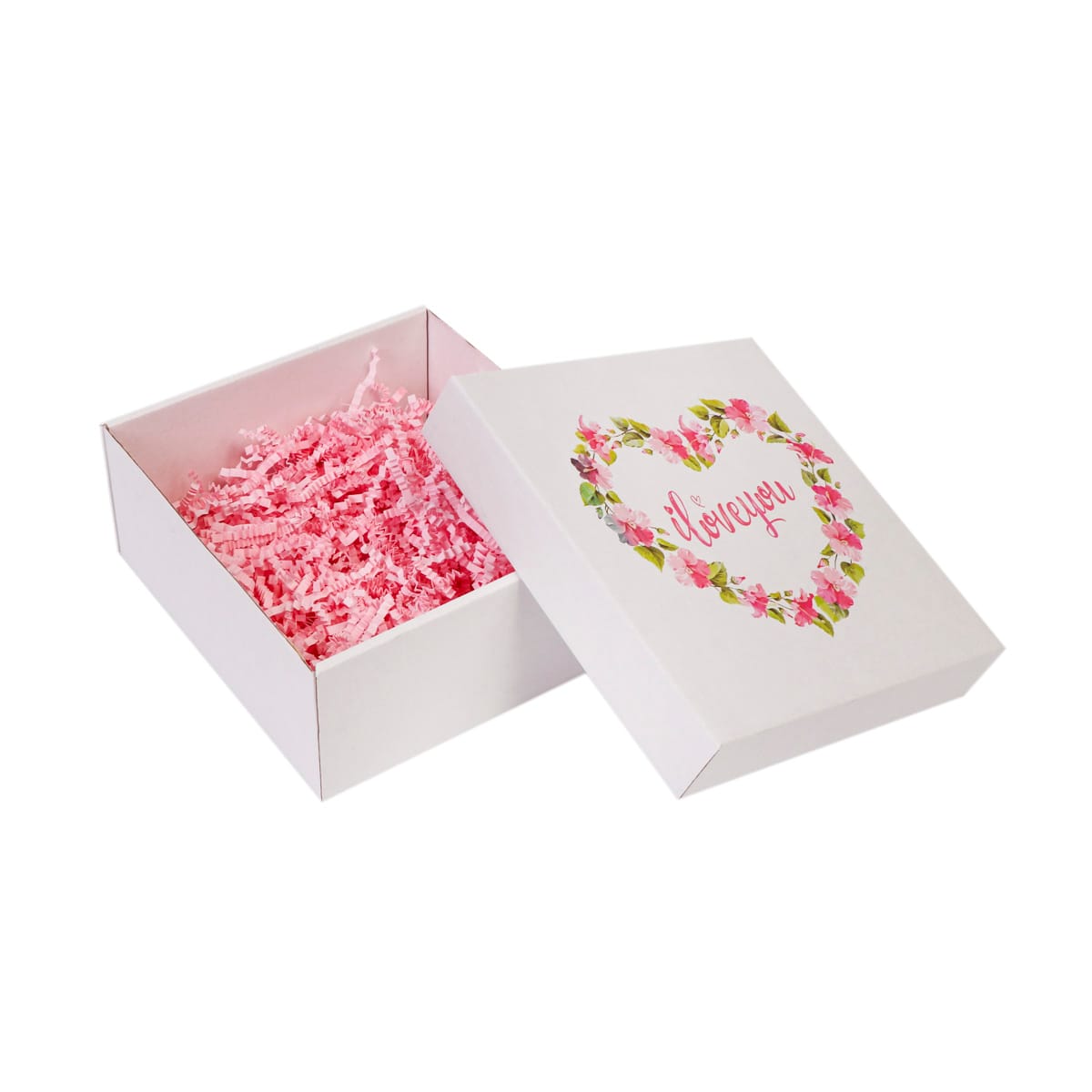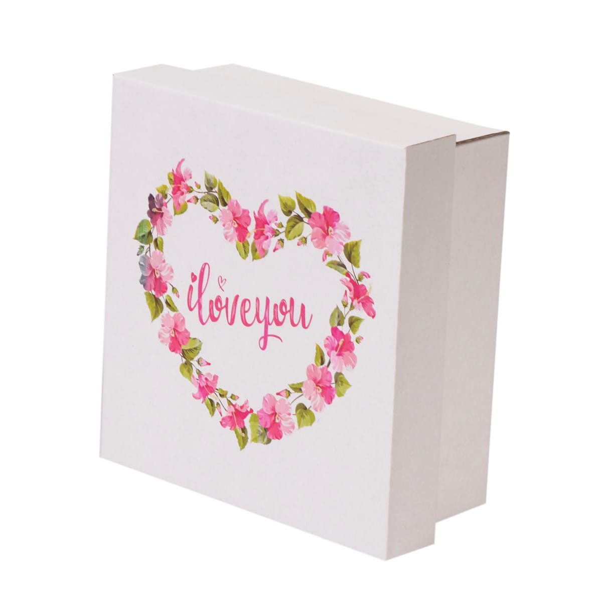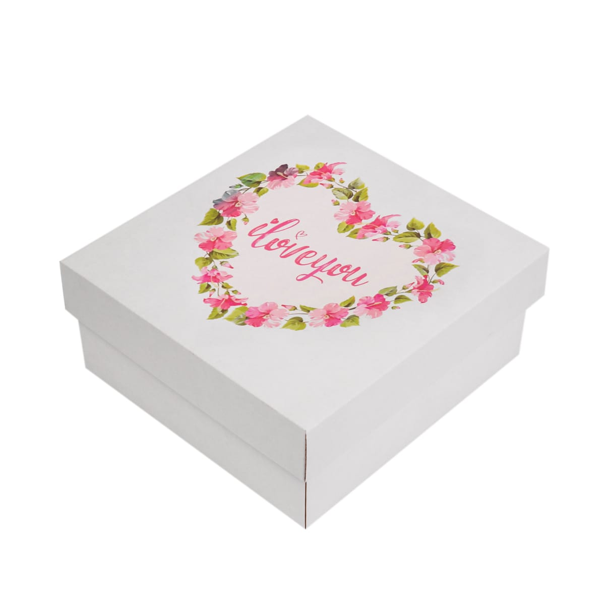 Dovanų dėžutė 180x180x80 mm spec, 14EWW, baltos sp., dėžutė + dangtelis, spauda I love You