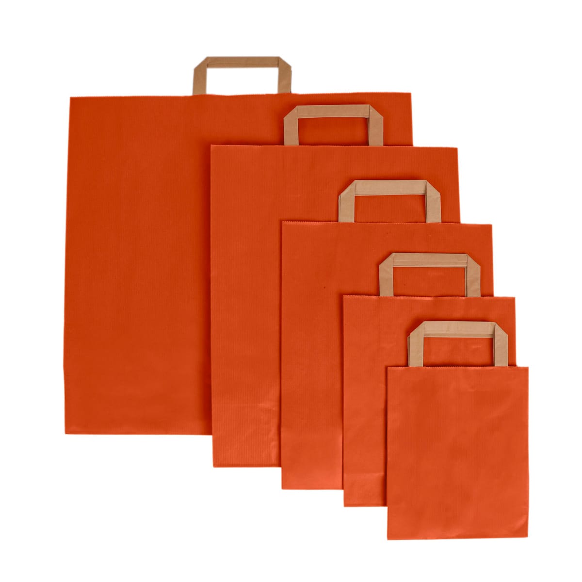 Dovanų maišelis su plokščiomis rankenėlėmis, 450x150x490 mm, PAP, 110 gsm, oranžinės sp.