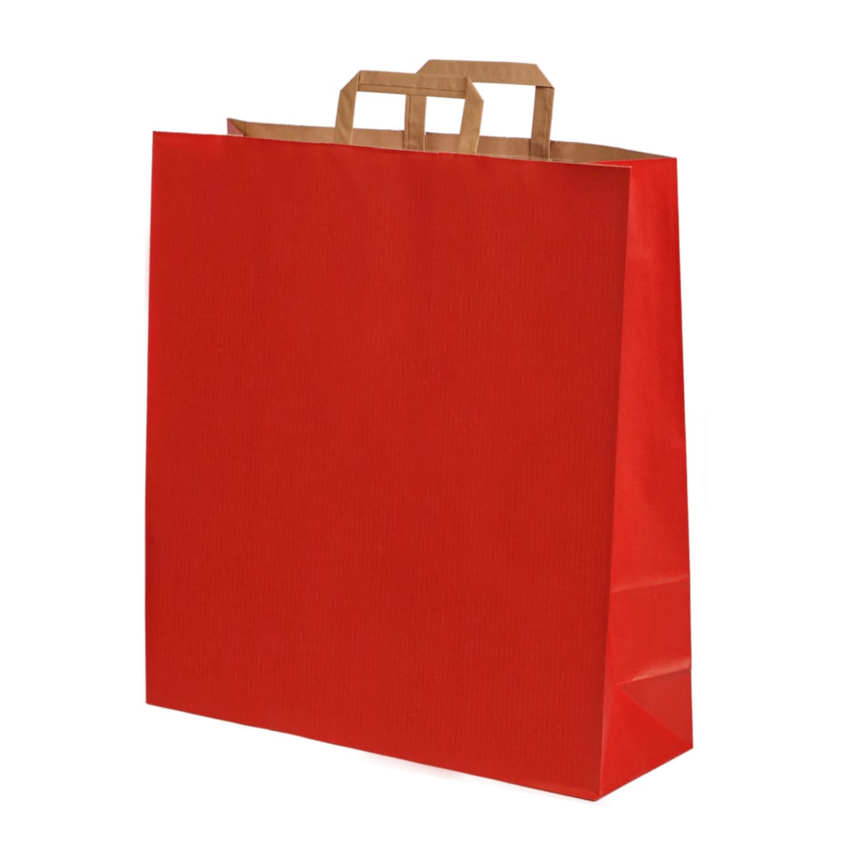 Dovanų maišelis su plokščiomis rankenėlėmis, 450x150x490 mm, PAP, 110 gsm, raudonos sp.