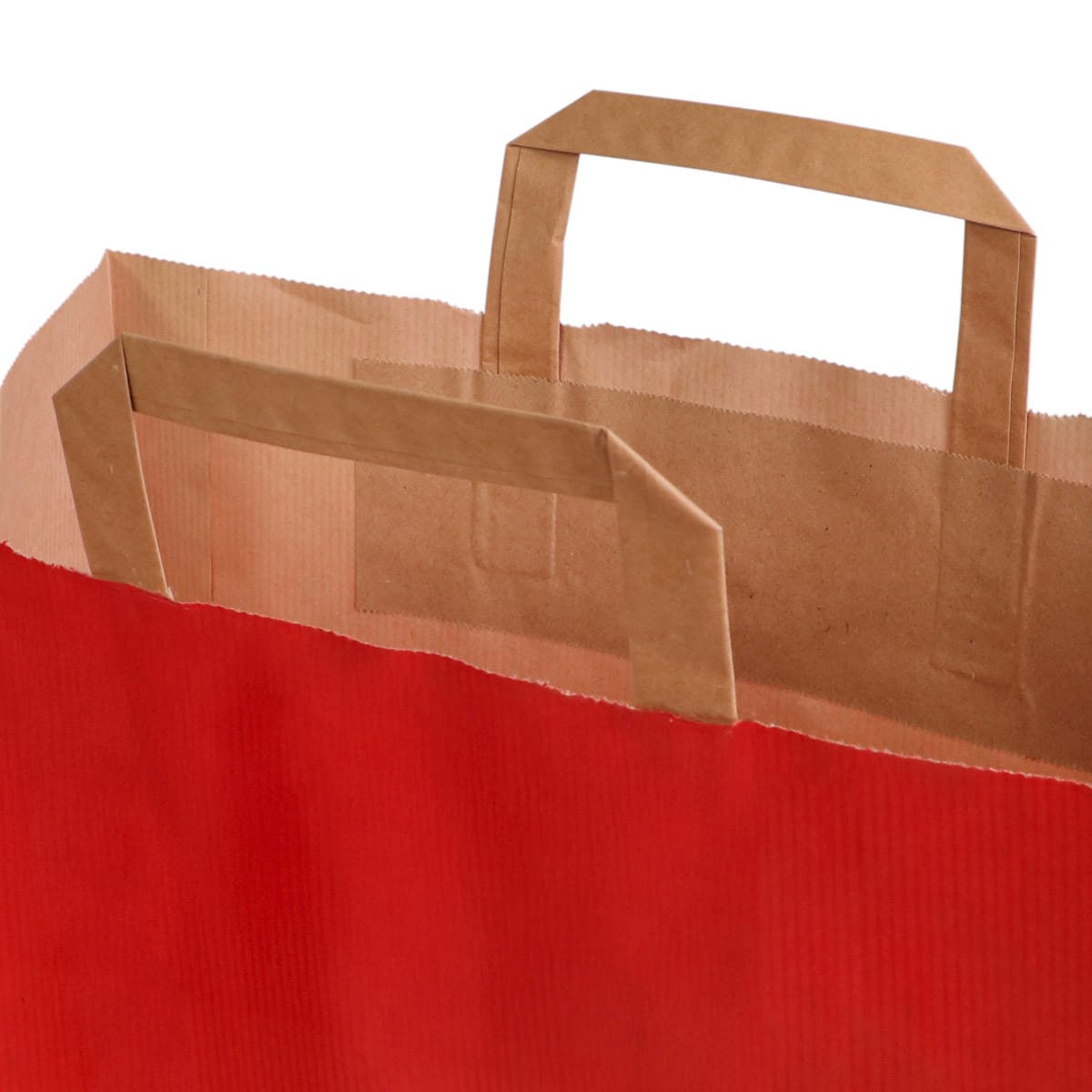 Popierinis maišelis su plokščiomis rankenomis. Krepšelis pagamintas iš nebalinto popieriaus, kurio išorė spalvota, tačiau vidus išlieka rudas. Rudos spalvos rankenos. Puikiai tinka dovanoms pakuoti ir pirkiniams.