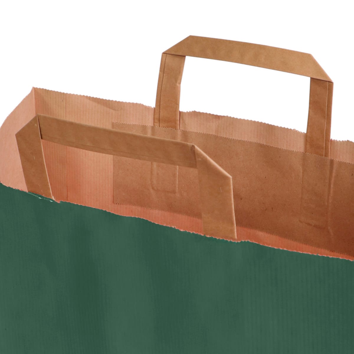 Popierinis maišelis su plokščiomis rankenomis. Krepšelis pagamintas iš nebalinto popieriaus, kurio išorė spalvota, tačiau vidus išlieka rudas. Rudos spalvos rankenos. Puikiai tinka dovanoms pakuoti ir pirkiniams.
